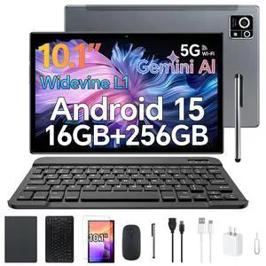 Android 14 Tablet 10.1 inch, 128GB Storage, 8GB(4+4) RAM, Octa-Core, 5G WiFi Tablet, 7000mAh Battery, BT 5.0, GPS, 13MP+8MP Camera, GMS Certified, 1TB Expandable, Tablet with Keyboard/Mouse/Case Kit