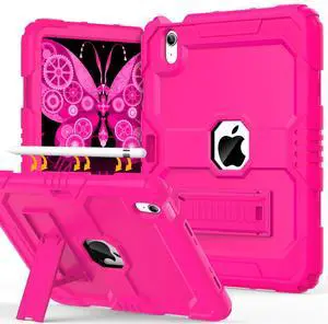 OKP Case for iPad (A16) 11th Generation 11 Inch 2025/ iPad 10th Generation 10.9'' 2022, Heavy Duty Shockproof Rugged i Pad 11/10 th Gen Protective Cover with Pencil Holder/Stand, Hot Pink