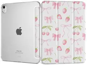 DONGKE for iPad Air 11-inch M4 2026 M3 2025 M2 2024, iPad Air 5th 2022 / 4th Gen 2020 10.9-inch, Slim Foldable Stand Hard PC Translucent Back Shell Smart Cover - [Auto Wake/Sleep] - Cherries