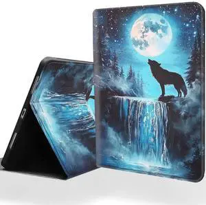 DSRGRGFDJ Tablet Case for iPad 10th Generation 10.9 Inch with Magnetic Auto Wake/Sleep and Multi-Angle Adjustable Stand Cover - Wolf Under The Moon