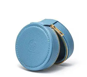 Syeindunce Angelears PU Circle Earphone Case, Portable IEM Carrying Case, Genuine Leather Storage Bag for Earbuds, Audio Accessories, Eartips and Cables (Blue)