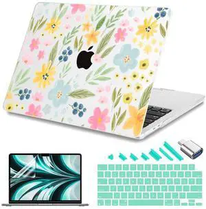 Teryeefi for MacBook Air 13.6 inch Case M5 A3449/M4 A3240/M3 A3113/M2 A2681 (Released 2026 to 2022), Hard Shell + Keyboard Cover+ Screen Protector+Dustp Lug + Type-C Adapter, Cute Flowers A009