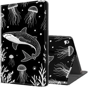 ETLKJVBL for iPad A16 Case, Stand Cover Multi Angle Viewing, Auto Sleep/Wake, Whale Shark and Jellyfish Exquisite Leather for iPad 11th Generation Case