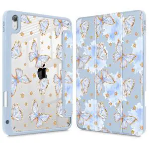 Tuiklol Case for iPad 11 inch (A16 Chip) 2025 Gen 11th / iPad 10.9 inch 2022 10th Gen, Buit in Pencil Holder with Shockproof Cover Clear Transparent Back Shell Auto Wake/Sleep,Blue Butterfly
