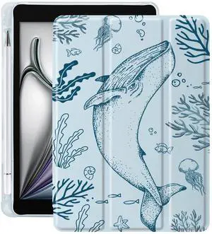 Idocolors Cute Sea Whale Blue Case for iPad 10th/11th Generation, Clear TPU Stand Back Cover with Pencil Holder, for 10.9 Inch iPad 2022/2025 Girly Auto Wake/Sleep Protective Case