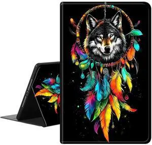 RAUEDWDJS Case for Samsung Galaxy Tab S10 Plus/S9 FE Plus 12.4 Inch Tablet,PU Leather Slim Standing Smart Cover with S-Pen Holder+ Auto Sleep/Wake for Tab S9 Plus-Colorful Dreamcatcher Wolf