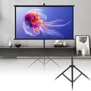Tripod Projector Screen with Stand 70 inch 16:9 4K HD Projection Screen Stand Wrinkle-Free Height Adjustable Portable Screen for Projector Indoor & Outdoor for Movie, Home Cinema, Gaming, Office