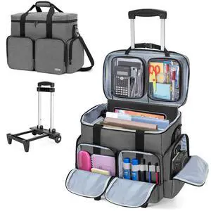 CURMIO Rolling Teacher Tote Bag with Padded Laptop Compartment for up to 15.6 Inches Laptop, Wheeled Teacher Bag for Teaching, Office, Craft, Gray