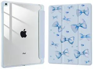 Joyland Light Blue Bow for iPad 6th/5th Generation 9.7 Inch 2018/2017,iPad Air 2/Air 1st,Built-in Pencil Holder with Shockproof Cover Clear Transparent Back Shell Auto Wake/Sleep,Blue