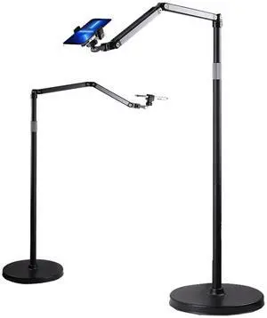 Tablet Floor Stand, Overhead Bed Phone Stand with 8.8 lb Super Stable Base & Angle/Height Adjustable, Compatible with 4.5''-13'' iPhone, iPad Pro 12.9, Galaxy Tab, Kindle, Phones