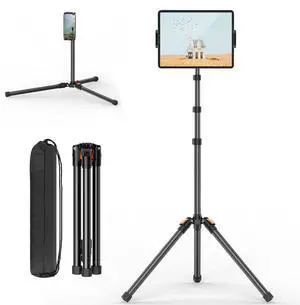 Tablet Floor Tripod Stand - 64.9 Tablet Holder Mount with Adjustable Height for Stream/Watching with Bluetooth Remote for iPad Pro 12.9 Mini Air iPhone and 4.7-13 Tablet and Cellphone