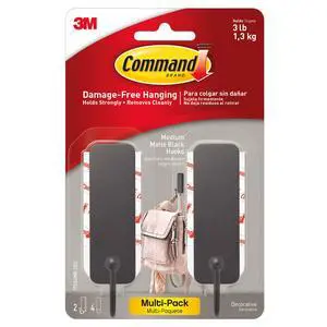 Command Medium Decorative Hooks [Removable]: 2-pack (Matte Black)
