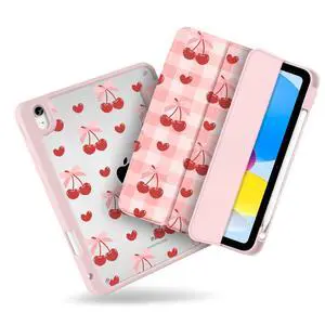 MecBevia Case for iPad 11 inch A16 (2025 11th Generation) / iPad 10.9 inch (2022 10th Gen) A3354, A3355, A3356, A2696, A2757, A2777 Built-in Pencil Holder & Auto Wake/Sleep, Pink Cherry Check