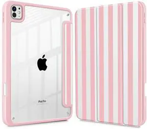 May Chen for iPad Pro 13 Inch Case M5 2025 / M4 2024, Built Pencil Holder & Clear Transparent Print Back Shell Slim Stand Shockproof Tablet Cover, Auto Wake/Sleep, Pink Stripes