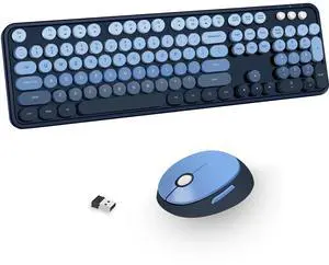 Wireless Keyboard and Mouse Combo, 2.4 GHz Wireless Full-Sized Typewriter Keyboard with Round Keycaps for Windows, Computer, Desktop, PC, Laptop (BlackPurple)