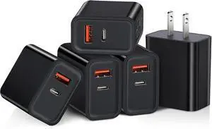 5 Pack USB C Wall Charger Block Boxeroo Dual Port PD Power Delivery Fast Type C Charging Block USB C Adapter Plug Box Brick for iPhone 15 Pro Max, Google Pixel 6 5, Samsung Galaxy (Black)