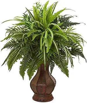 26 Mixed Greens and Fern Artificial Plant in Decorative Planter