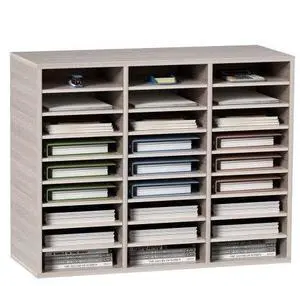 VEVOR 27 Compartments Wood Literature Organizer, Adjustable Shelves, Medium Density Fiberboard Mail Center, Office Home School Storage for Files, Documents, Papers, Magazines, Grey