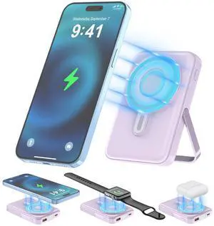 Wireless Portable Charger,3-in-1 Magnetic Power Bank 10000mAh with LED Display,22.5W Fast Charging Mag-Safe Battery Pack,Compatible with iPhone 15/14/13/12, Apple Watch Series, Airpods (Purple)