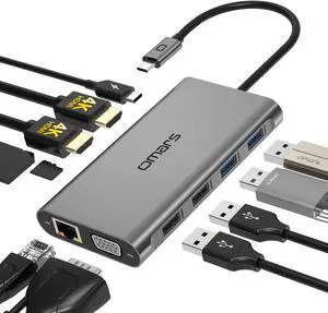 11in1 USB C Hub, Type-C laptop Docking station, Triple monitor, 4K display, compatible with Windows, MacOS, Tek-sailing TSDS1101