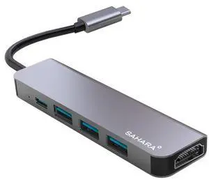 Sahara - 5-in-1 USB-C Hub Adapter, Sleek Aluminum Multiport Hub with HDMI, USB 3.0, and USB-C PD Charging Compatible with PC and MAC, (LT00072)
