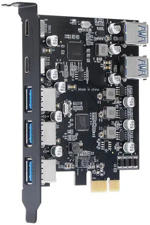 XRIKUI PCIe to USB 3.0 5X USB-A and 2X USB-C Ports Expansion Card,PCI Express Internal USB 3 Hub Converter for Desktop PCS Riser Card