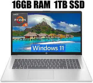 HP 17 Laptop (17.3" FHD Anti-Glare, AMD Ryzen 5 7430U, 32GB RAM, 1TB SSD, 6-Core (> i7-1165G7)), for Business, Enterprise, Students, Long Battery Life, Webcam, Fast Charge, Win 11 Pro w/AI CopilotProcessor Name: AMD Ryzen 5 7430UMemory: 16GBSSD: 512GB NVMeGPU/VPU: AMD Radeon GraphicsModel #: HP 17 Laptop R5 32GB 1TB