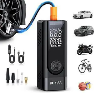 Tire Inflator Portable Air Compressor, 150 PSI Cordless Air Pump, Dual Power 6000mAh, 12V DC Car Plug, Fast Inflation 24L/Min, Auto Shut-Off, LED Light, 4 Preset Modes for Car, Bike, Motorcycle, Balls