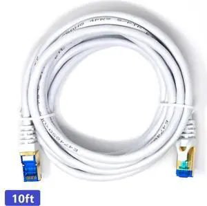 QualGear RJ45 Cat 7 Ethernet Patch Cable, 10Gpbs High-Speed Cable, 600MHz, Triple-Shielded, 10 ft, White, Round