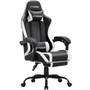 DIXSG Ergonomic GTWD-200 Gaming Chair with Adjustable Pillows and Footrest, White