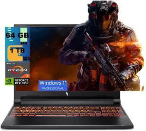 acer Nitro 16 Gaming Laptop, 16" WUXGA (1920 x 1200) Display, AMD Ryzen 7 260 8-Core Processor, NVIDIA GeForce RTX 5050 8GB GDDR7, 64GB DDR5  1TB PCIe SSD, WiFi 6, Backlit KB, Windows 11 Pro
