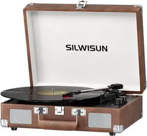 Vinyl Record Player with Speakers Vintage Bluetooth Turntable, Battery Powered Portable Vinyl Player, Retro Suitcase Phonograph, 3-Speed Lp Player RCA Out AUX in Headphone Jack (Brown)