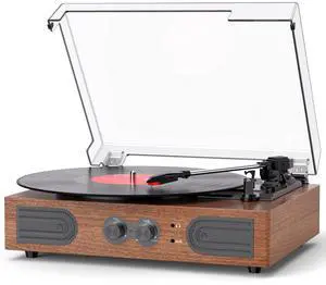 Vinyl Record Player High-Fidelity Bluetooth Turntable, Enhanced Bass Record Player with Speakers Magnetic Cartridge BT5.3 Playback RCA Out Aux in Belt-Drive 33/45RPM