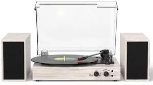 Bluetooth Record Player with External Stereo Speakers, Vintage 3-Speed Turntable ^^ PC Recording Vinyl to MP3 ^^ RCA Headphone Output & AUX Input for External Audio, White