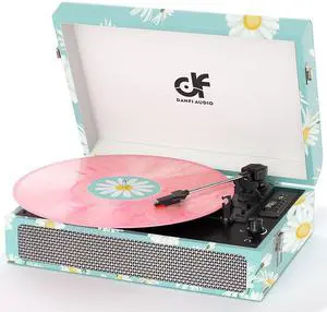 Portable Record Player with Bluetooth Connectivity USB Playback and Recording 3 Speed Turntable Vintage Suitcase Design Built in Speakers Rechargeable Battery for Vinyl Lovers