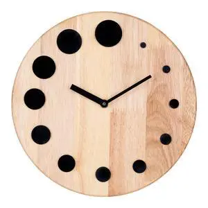 Wooden Wall Clock with Black Acrylic Dot, Modern Round Rubber Wood Natural Design, 24 cm size, Wall Mount (Battery not included), Suitable for Living Room, Bed Room, Office and Gifting