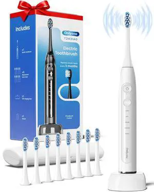 Sonic Electric Toothbrush for Adults, Rechargeable Ultrasonic Electric Toothbrush with 8 Brush Heads, Travel Case, Charging Base & Wireless Charging - 5 Modes with Smart Timer