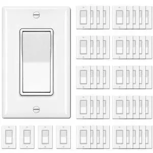 30 Pack Single Pole Light Switch with Wall Plate, UL Listed, 15A 120/277V, On/Off Rocker Paddle Interrupter Wall Switch, Grounding Screw, Residential Grade, Suitable for Home and Business, White