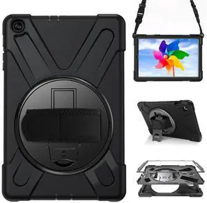 Case for Samsung Galaxy Tab A 10.1 2019 (SM-T510/T515/T517),Portable Heavy Duty Dropproof Protective Cover Case with 360 Rotating Stand,Handle & Shoulder Strap,Stylus Pen (New Black)