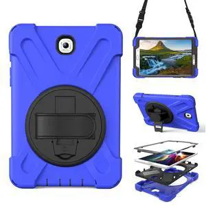 Case for Samsung Galaxy Tab S2 8.0 2015 (SM-T710/T713/T715/T719),Portable Heavy Duty Dropproof Protective Cover Case with 360 Rotating Stand,Handle & Shoulder Strap,Stylus Pen (New Blue)