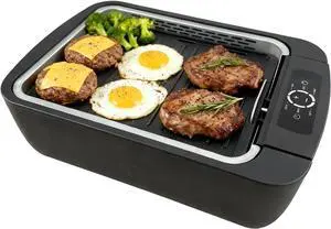 Indoor Smokeless Grill & Griddle, 1100W Electric Gill for BBQ, Smoke Extraction Device, 6-Speed Temperature Control, Non-Stick Grill Plate with Oil Drain Holes, Dishwasher Safe, 5-Serving