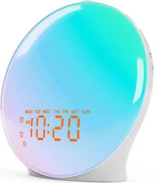 Sunrise Alarm Clock with Wake Up Light & White Noise Machine - 21 Soothing Sounds, 12 Color Dimmable Night Lights, Bluetooth Speaker, Digital Clock for Heavy Sleepers Adults/Kids