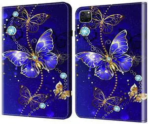 Dteck for iPad Pro 13" M4/M5 2024/2025 Folio Case with Adjustable Stand/Card Slots/Elastic Band Closure/Pen Loop Holder, Cute Cartoon PU Leather Protective Slim Lightweight Cover Shell, Blue Butterfly