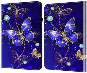 Dteck for Galaxy Tab A 10.1" 2019 Release (Model SM-T510/T515/T517) Folio Case with Card Slots/Stand/Elastic Band Closure/Pen Loop Holder - Faux Leather/TPU Protective Slim Cute Cover (Blue Butterfly)