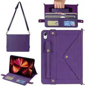 Handbag Case for iPad mini 2024/2021 8.3", Techcircle Folio Stand PU Leather Crossbody iPad mini 6th/7th Gen Cover with Pencil Holder+Card Slots Wallet Case with Shoulder Strap+Hand Strap, Purple