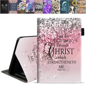 DEHJYYIJUY Case for Fire HD 10 Tablet 10.1 inch (9th/7th Generation, 2019/2017 Release), Premium PU Leather Cover with Card Slot & Pencil Holder, Pink Background Bible Verse Phil 4-13