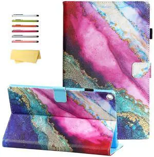 UUcovers Kindle Fire HD 10 Tablet Case 9th/7th Generation with Pencil Holder [Auto Wake/Sleep] Card Slots Smart PU Leather Folio Stand Cover for Fire HD 10.1 inch 2019/2017, Rainbow Marble