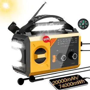 20000mAh 74000mWh Emergency Crank Radio, NOAA Weather Radio AM FM Hand Crank Solar Flashlight, Battery Operated Cell Phone Charger, USB Charging, Reading Lamp, SOS & Compass for Emergencies- Brand: Kaito