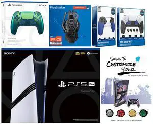 Sony Playstation 5 Pro Bundle with Extra Chroma Teal Controller, Plantronics Headset, Trigger Stop Kit, FPS Grip Kit and MightySkins Decal Voucher Plus 1 Year CPS Extended Warranty