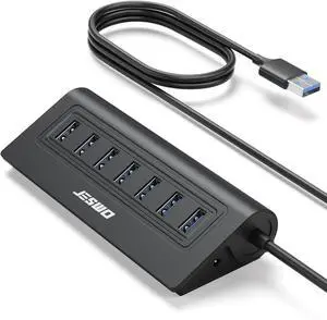 USB Hub 3.0, Aluminum 7 Port USB 3.0 Hub with 3.3Ft Cable, USB Splitter with 7-USB3.0 Data Ports Compatible with MacBook, Laptop,Surface Pro, PS5, PC and More (No Power Adapter Included)